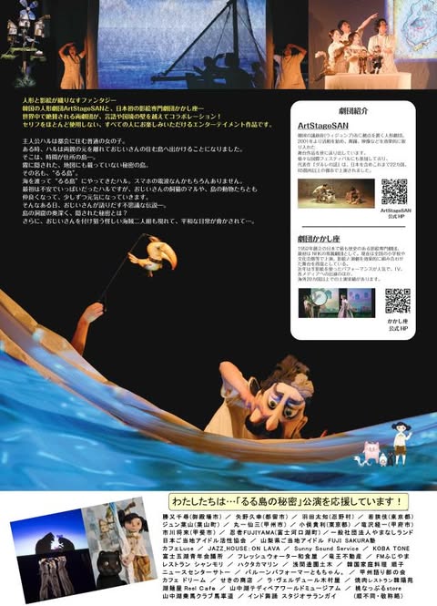 日本屈指の影絵劇団『劇団かかし座』と韓国の人気人形劇団『Art Stage SAN (アート·ステージ·サン)』がタッグを組んで贈る、影絵と人形劇のコラボレーション演劇「るる島の秘密」をご紹介します。