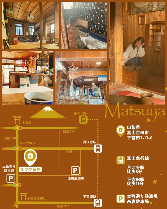 日時:2025年3月16日(日) 時間:10:00~18:00 場所:まつや茶房(山梨県富士吉田市下吉田3-13-6) アクセス:富士急行「月江寺駅」から徒歩8分 参加費:無料