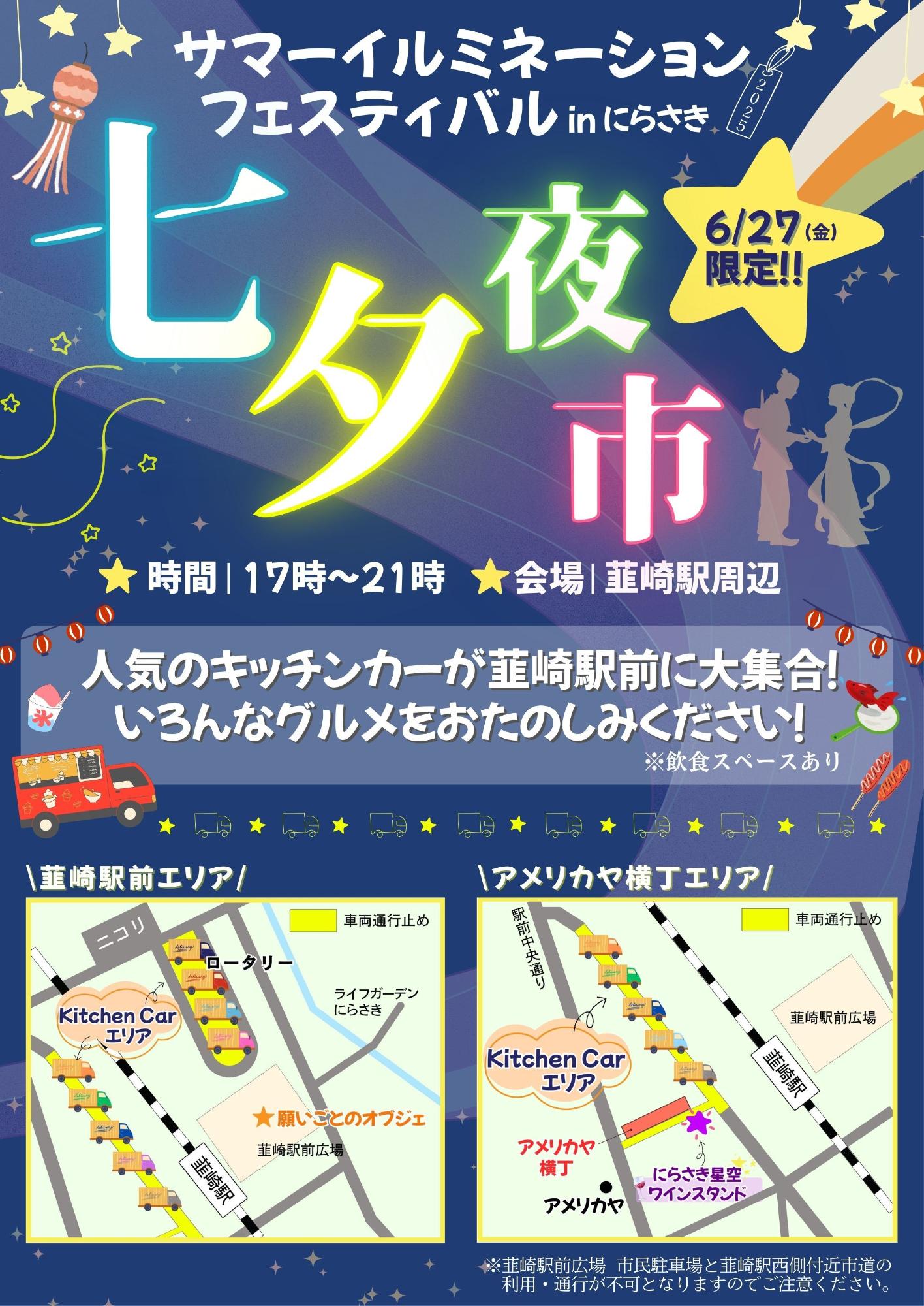 イベント初日は、人気のキッチンカーが大集合する「七夕夜市」が開催されます!