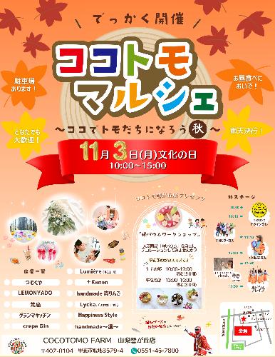 山梨県甲斐市で、心温まる交流イベント「第2回 ココトモマルシェ」が開催されます。テーマは“ココでトモだちになろう”。世代を超えてつながりを感じられるマルシェです。