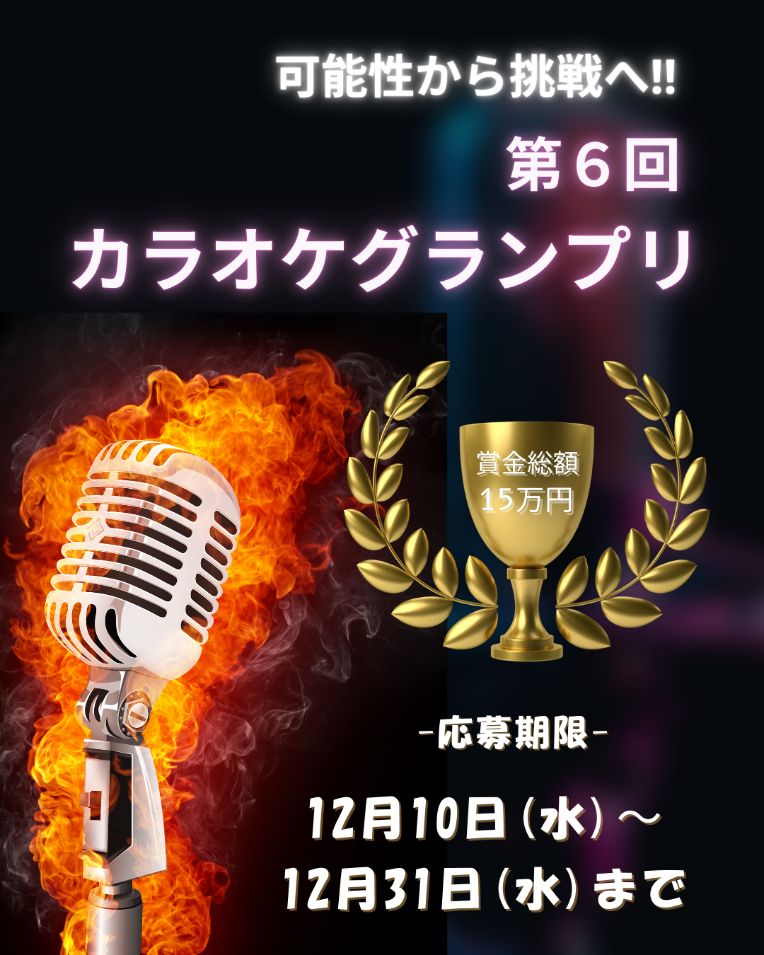 賞金を狙いたい方、ステージに立ちたい方、歌で挑戦したいすべての方へ。
