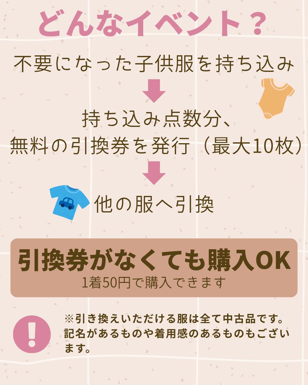 不要になった子供服を持ち込んで交換したり、格安で購入できるイベントです。