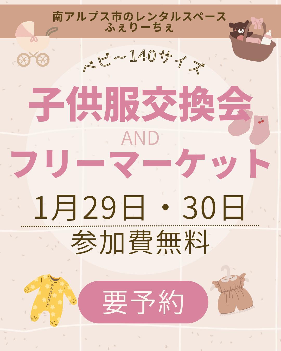 子供服交換会&フリーマーケット開催|南アルプス市【1/29・30】