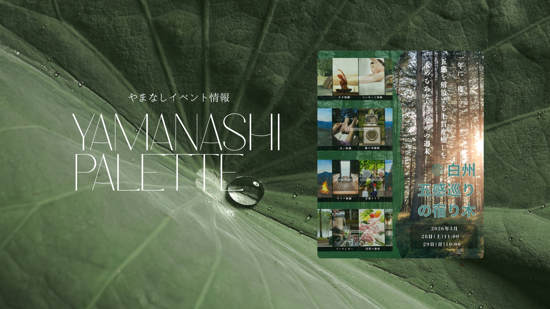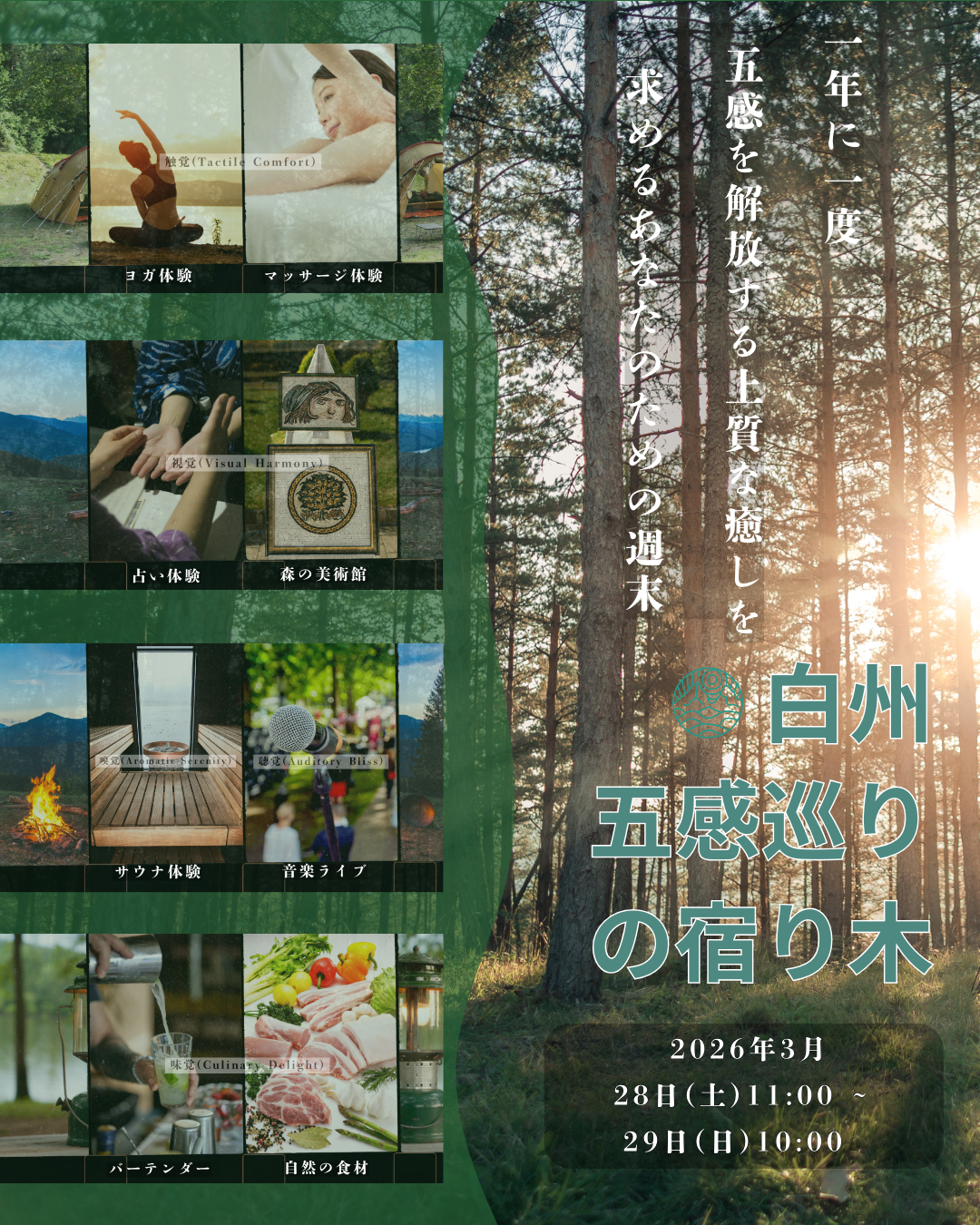 2026年3月、名水の里・山梨県白州の森で、五感をひとつずつ丁寧に解き放ち、本来の自分へ還るためのリトリートイベント