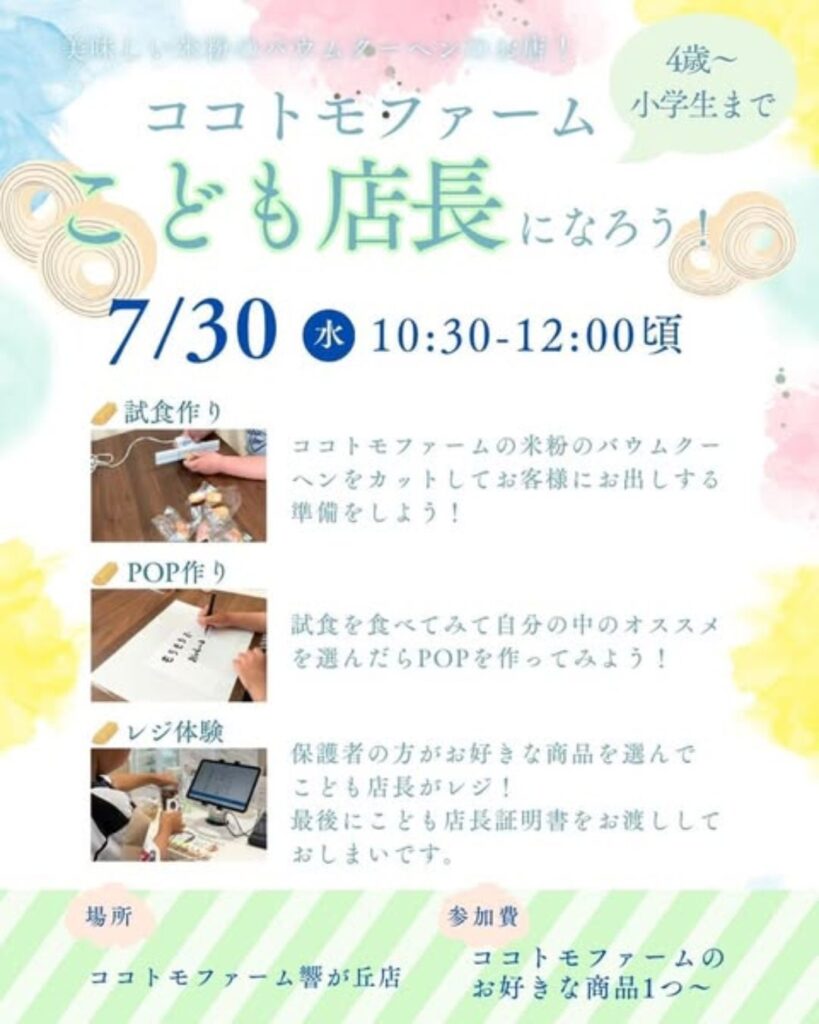 夏休み、お子さんと一緒に何か新しいことにチャレンジしてみませんか❓⭐ココトモファーム響が丘店では、お子さんが楽しく学びながら成長できる特別なイベント「ココトモファームこども店長になろう」を開催します(●´ω`●) 未来の店長さん、大... -