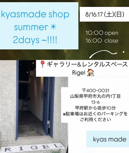 💎✨ Kyasmade サマーポップアップショップ:キラキラ輝くチャンス!✨💎 個性豊かで高品質、そしてお手頃価格のハンドメイドアクセサリーで知られるKyasmadeが 甲府で2日間限定のポップアップショップを開催します! Kyasmade... -