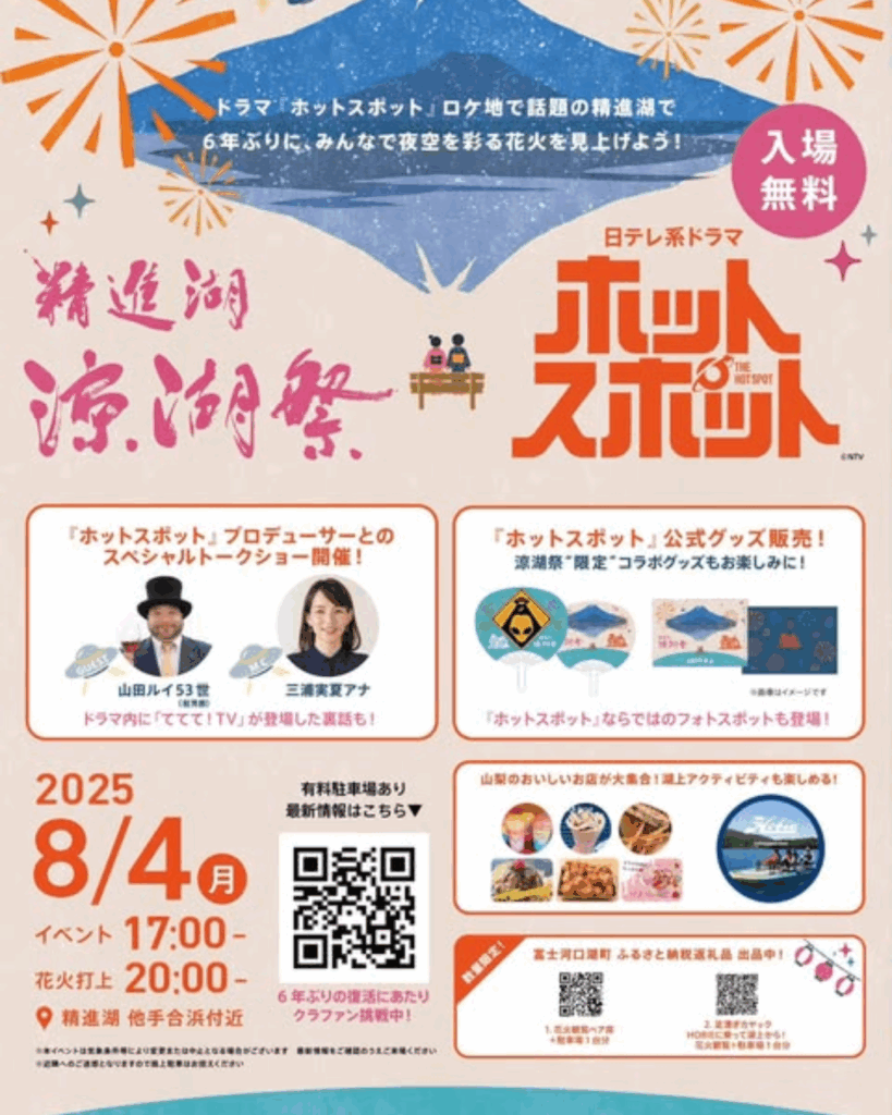 【参加無料】精進湖「涼湖祭」2025!花火とスペシャルトークで夏の夜を楽しもう!