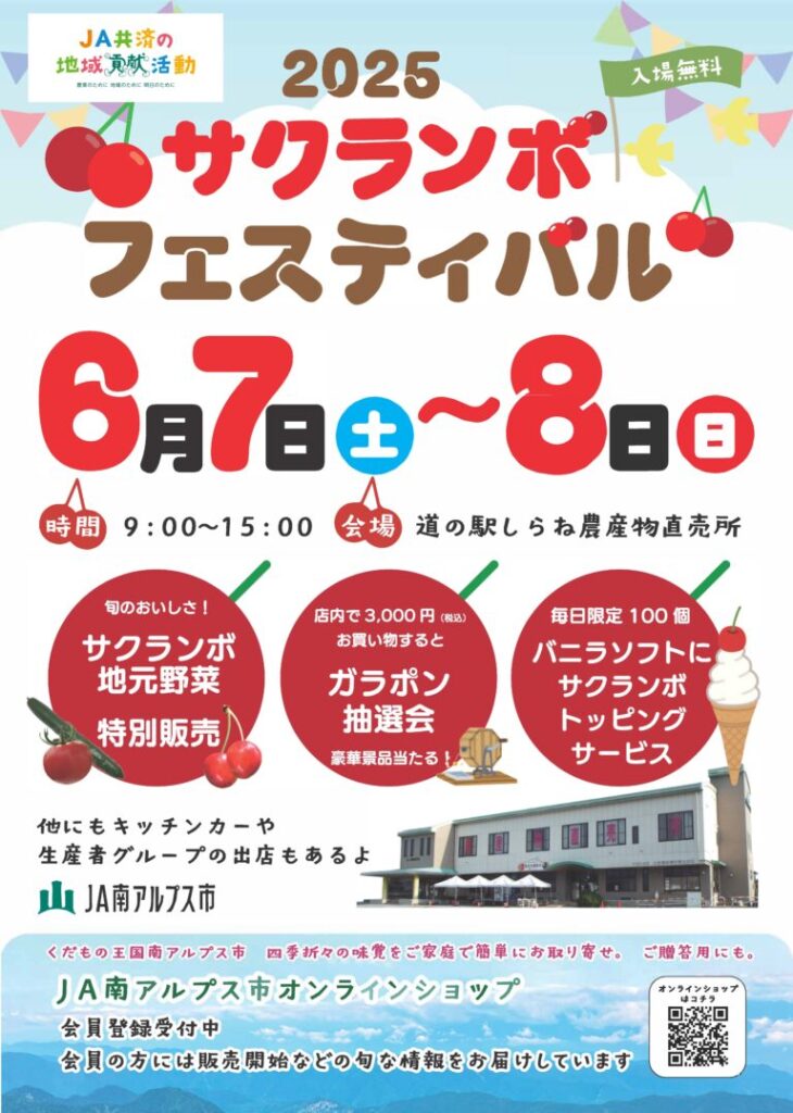 2025サクランボフェスティバル開催!道の駅しらね農産物直売所で2日間のお祭りを楽しもう!